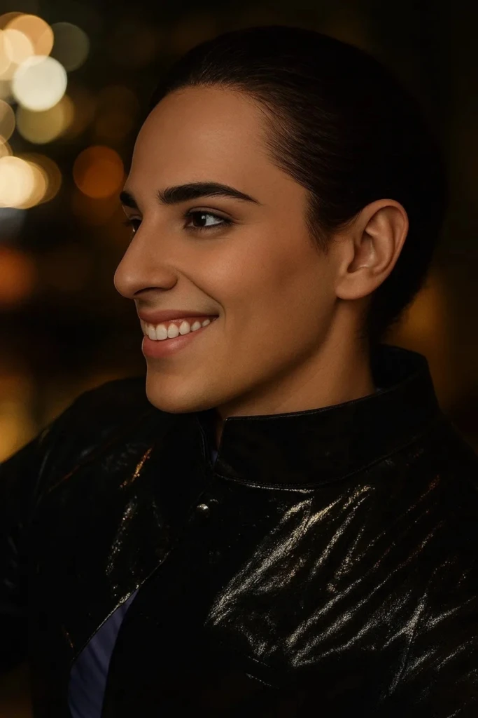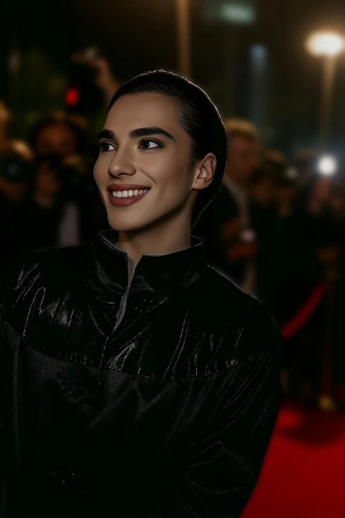 Артист эффектно появился на красной дорожке, моментально приковав к себе внимание фотографов и гостей. Его образ был безупречен: кожаное черное блестящее длинное пальто, сверкающее в свете софитов, подчеркивало харизму и стиль.